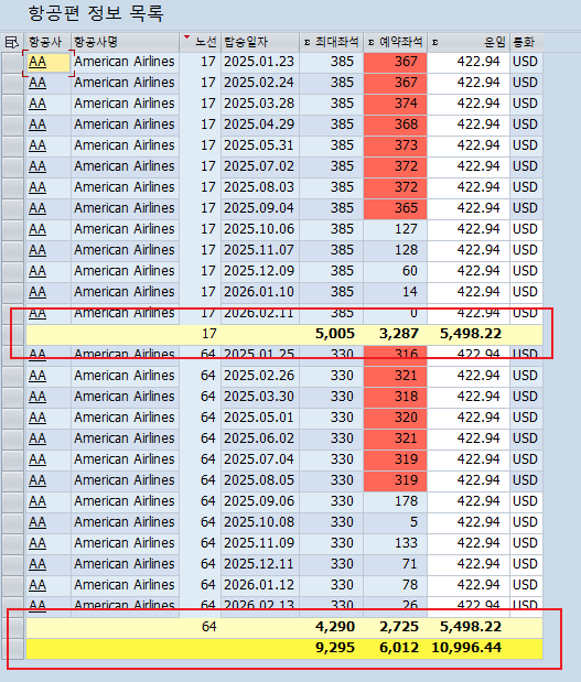 ALV 합계라인은 모두 이미 아실 것 같지만 다시 한 번 설명을 드리자면,