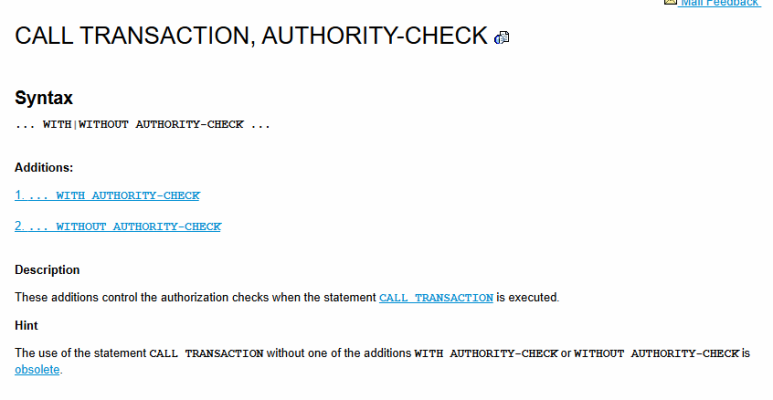 SAP ABAP - 권한없는 Transaction 호출 RS_HDSYS_CALL_TC_VARIANT