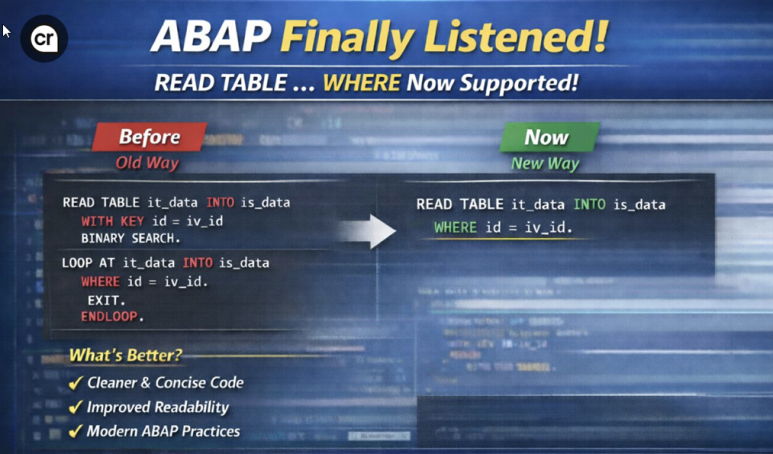 ABAP Read Table에 Where 조건이 추가 됐습니다.